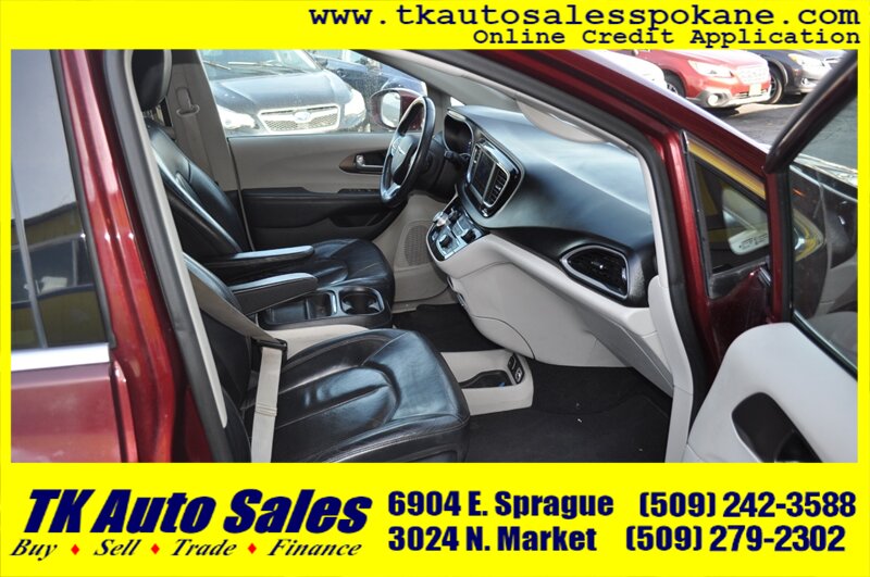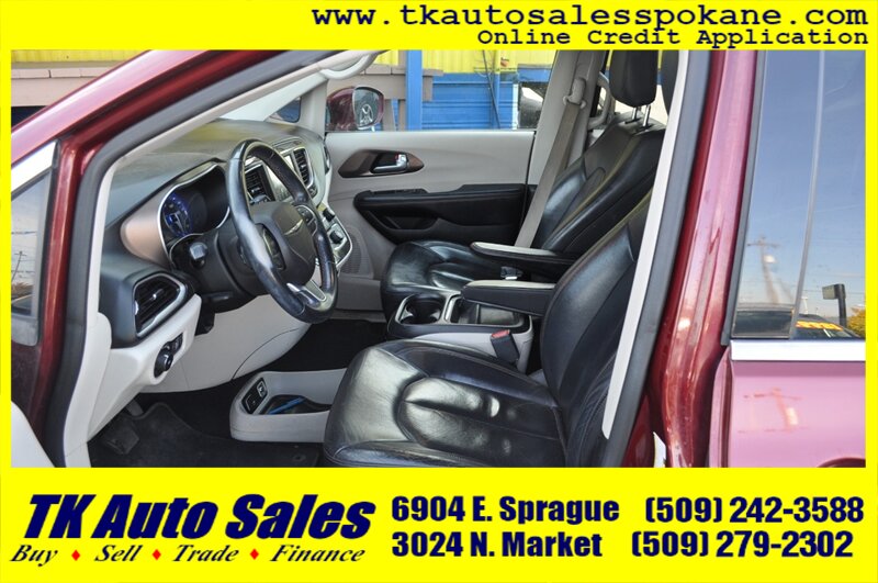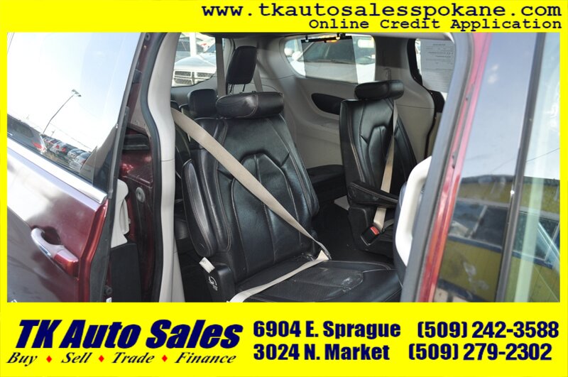 Introducing the 2018 Chrysler Pacifica Touring L, a versatile and family-friendly minivan with a striking red exterior. Powered by the robust Pentastar 3.6L V6 engine, it delivers 287 horsepower and 262 ft-lbs of torque, ensuring a smooth and responsive driving experience. This model features a spacious and well-appointed interior, designed for comfort and convenience. Standard features include a power liftgate, keyless entry, and a 7-inch touchscreen infotainment system with Apple CarPlay and Android Auto integration. Additional amenities such as a rearview camera, tri-zone climate control, and Stow 'n Go seating enhance its practicality. With an impressive fuel efficiency of 18 MPG in the city and 28 MPG on the highway, this Pacifica is perfect for both daily commutes and family adventures. This vehicle is in excellent overall condition, making it a reliable choice for your next journey.